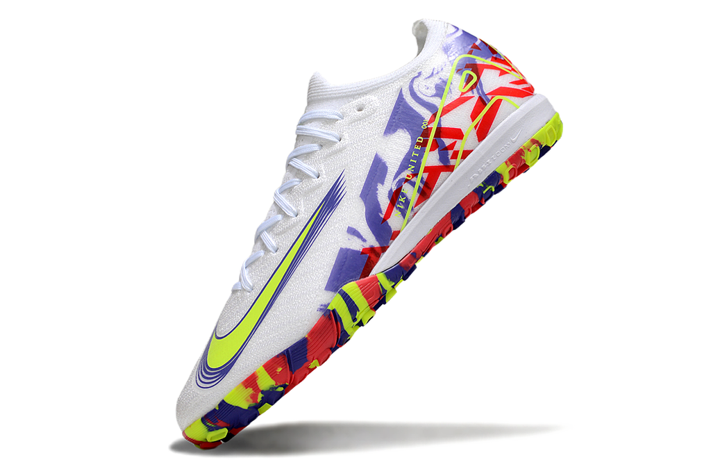 A tecnologia Air Zoom no calcanhar proporciona amortecimento responsivo, enquanto o solado TF com travas específicas oferece tração e estabilidade para movimentos rápidos e mudanças ágeis de direção.